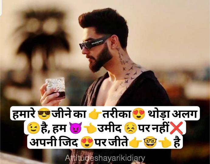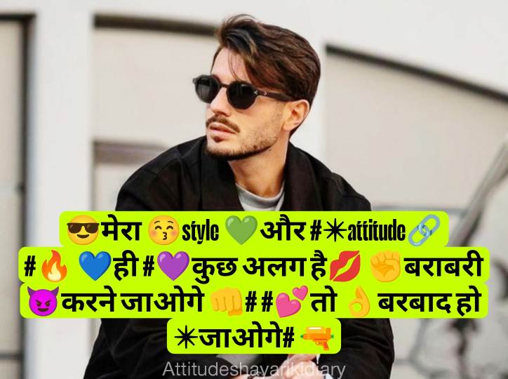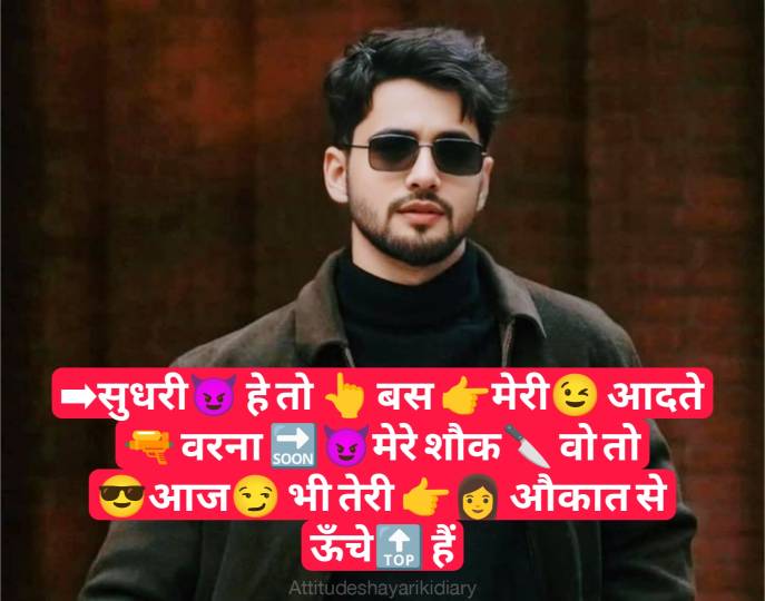 नमस्कार मेरे प्यारे मित्रों आज मैं आप सभी के लिए Attitude Shayari For Boy in Hindi लेकर आया हूं। आपको इस पोस्ट में (➡सुधरी😈 हे तो 👆 बस 👉मेरी😉 आदते 🔫 वरना 🔜😈मेरे शौक🔪 वो तो 😎आज😏 भी तेरी 👉👩 औकात से ऊँचे🔝 हैं) इसी तरह की एटीट्यूड शायरी इमोजी के साथ पढ़ने को मिलेंगी।