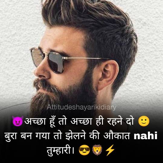 नमस्कार मेरे प्यारे मित्रों आज मैं आप सभी के लिए Attitude Shayari For Boy in Hindi लेकर आया हूं। आपको इस पोस्ट में (➡सुधरी😈 हे तो 👆 बस 👉मेरी😉 आदते 🔫 वरना 🔜😈मेरे शौक🔪 वो तो 😎आज😏 भी तेरी 👉👩 औकात से ऊँचे🔝 हैं) इसी तरह की एटीट्यूड शायरी इमोजी के साथ पढ़ने को मिलेंगी। अगर आप अपना एटीट्यूड दिखाने के लिए या किसी को जलाने के लिए Sudhri Hai To Bas Meri Aadate Attitude Shayari की तलाश में है तो आपकी तलाश इस पोस्ट से पूरी हो जाएगी। यहां पर आपको वह सभी शायरियां मिलेगी जैसी आप ढूंढ रहे हैं । यहां पर मैंने Attitude Shayari 😎😎😎 2 Line भी दी है जो आपके एटीट्यूड और पर्सनालिटी को सबसे ज्यादा सूट करेगी। आप इस Attitude Shayari को कॉपी करके अपनी पोस्ट के साथ लगाकर इंस्टाग्राम पोस्ट पर डाल सकते हैं।